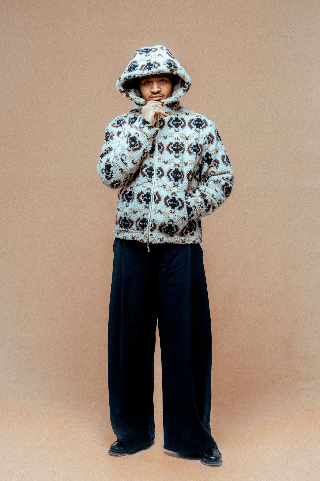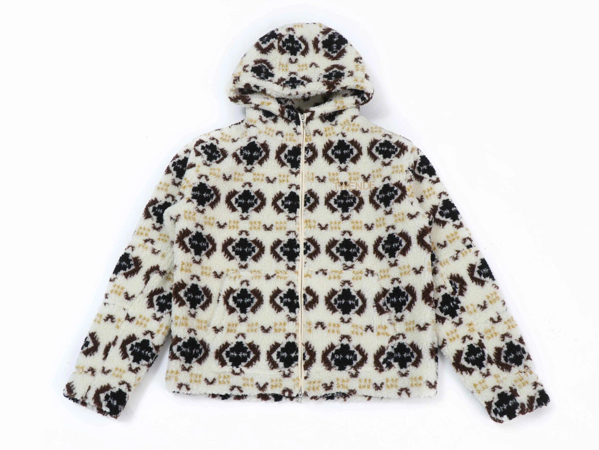 Gjør deg klar for komfort og stil i ett plagg. Denne unike teddy-hoodien fra Twende kombinerer klassiske etno-inspirerte mønstre med moderne snitt og detaljer. Laget i et mykt, fluffy og varmt materiale – perfekt for kalde dager eller som et statement-plagg året rundt.